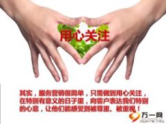 查看详细内容为了在寿险行业取得成功,我们必须要“有事情去做,有地方可去,有特定的人去拜访”;经统计,市内平均每五个家庭就有一辆私家车,那么车就是一个很好的介质,能帮助我们迅速掌握客户信息。 去年2月某寿险伙伴在她所经营...
