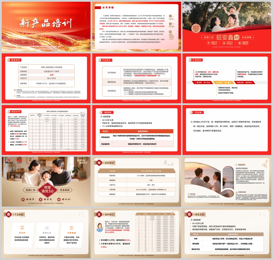 •招安鑫4.0:目标客群主要为40 - 60岁人群,可用于养老补充和15 - 20年教育金规划。对于养老补充,退休后可作为现金流补充,抵抗利率下行及通货膨胀风险;对于教育金规划,第五个保单年度开始领取教育金补充,在孩子的受教育阶段内领取稳定现金流,毕业后可一次性补充创业金或婚嫁金。销售时强调合同刚性兑付,保证收益写进合同。