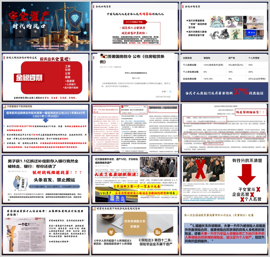 在金税四期背景下,规范收入分配和加强财富监管成为时代的风口。财富所有者在面对复杂的税务环境和财富传承需求时,需要更加谨慎地进行资产配置和财富规划。保险以其独特的法律属性、风险保障功能和财富传承优势,成为安全资产和财富传承的理想选择。