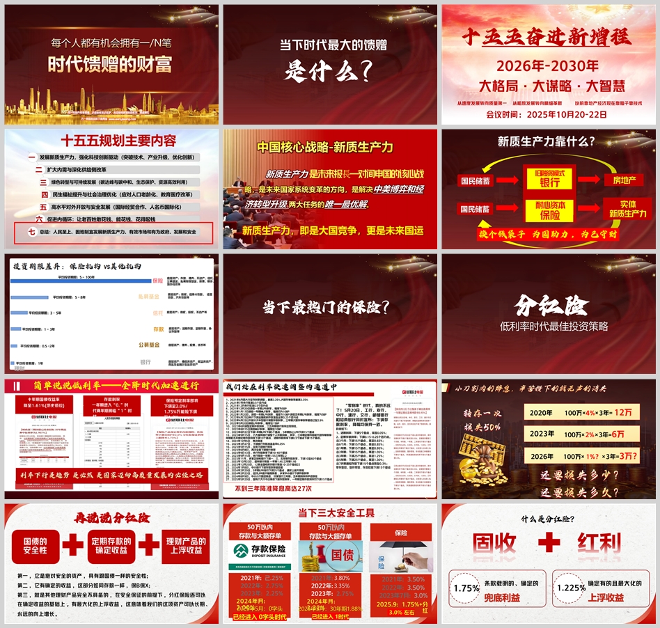 在低利率时代和长寿时代背景下,保险产品(尤其是分红险)成为重要的金融工具。它不仅提供安全性和确定收益,还能通过权益类投资获取额外回报,帮助客户应对养老、医疗等长期风险。同时,保险资金的长期投资属性也支持了实体经济和新质生产力的发展,体现了“换个钱袋子,为国助力,为己守财”的理念。