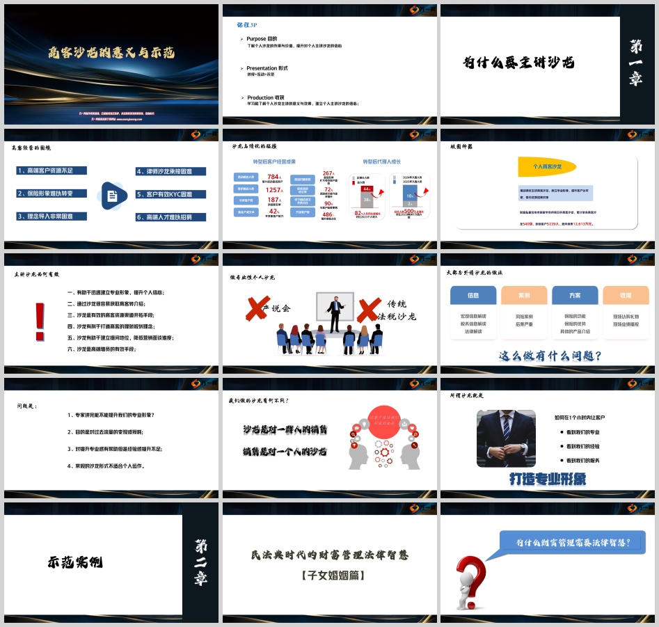 理念打通与营销助力:有利于打通高客的理财规划理念,通过专业的讲解和分析,让高客认识到保险在财富管理中的重要性。同时,有助于建立提问地位,降低营销面谈难度,使营销过程更加自然和顺畅。此外,沙龙也是高端增员的有效手段,能够吸引优秀的人才加入保险行业。