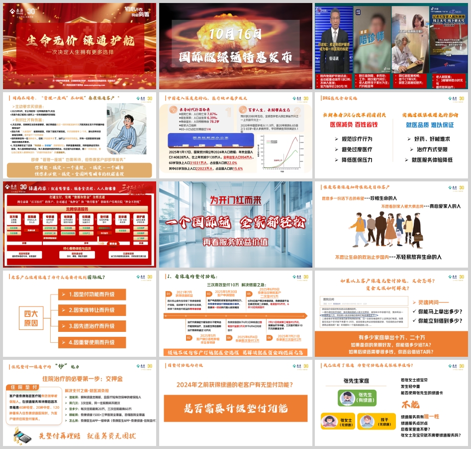 活动邀约话术:“张姐,泰康30年大庆,推出了最高版本的国际版绿通全省特惠回馈。它不仅能享受国际二诊、梅奥直通,最关键的是有两张‘可转让版’,可以让我们的父母也享受到这个权益,解决了他们年纪大买不了保险的难题。名额非常有限,我特意为您报了名,明天下午的权益报告会,我来接您一起去听听?”
