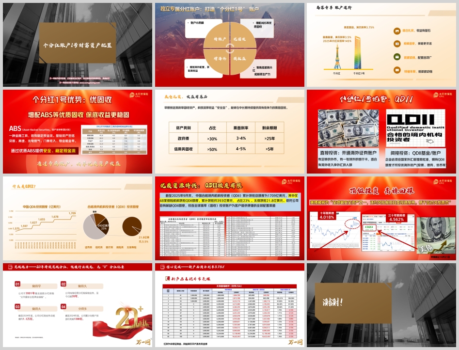 在“资管新规”打破刚兑、全球资本市场波动加剧的背景下,高净值人群对财富管理的需求已从“追求高收益”转向“安全稳健+适度增值+全球配置”。如何在复杂环境中实现资产的“抗波动、稳增长、可传承”?太平洋保险推出的《个分红账户1号财富资产配置计划》(以下简称“个分红1号”),以“小而精、低波高分红、新质生产力”为核心标签,通过稀缺资源加持、优质固收打底、海外配置增利,交出了一份“兑现能力强、长期表现稳”的答卷。一、产品定位:高客专享的“小而精”财富配置工具