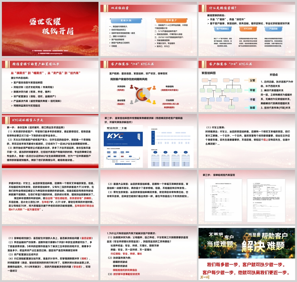 精准营销的核心在于深挖井——通过KYC闭环销售三步走,把客户从模糊的面孔变成清晰的画像,把泛泛的需求变成可量化的财务目标。身份互换建立专业信任,家庭结构图揭示潜在风险与冲突,保单检视与资产配置建议书呈现落地方案,让客户看到你能解决别人解决不了的问题。