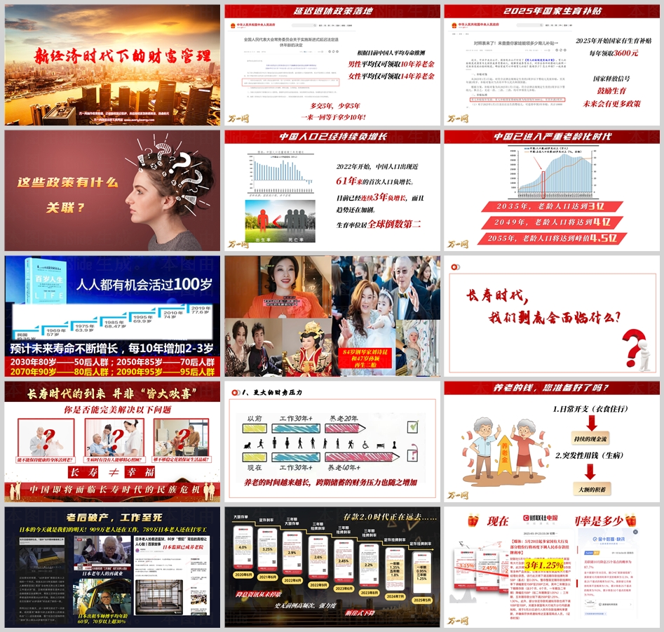 延迟退休政策逐步落地,“多交5年,少拿5年”的现实引发广泛关注。而存款利率从2020年的4.18%断崖式下降至如今的1.25%,更是宣告了“存款2.0时代”的远去。生育率位居全球倒数第二,2049年老龄人口将达4亿,2055年达峰值4.5亿...这一系列数据描绘了一个不容乐观的未来图景。然而,危机往往与机遇并存。新经济时代下,财富管理的内涵正在发生深刻变化。