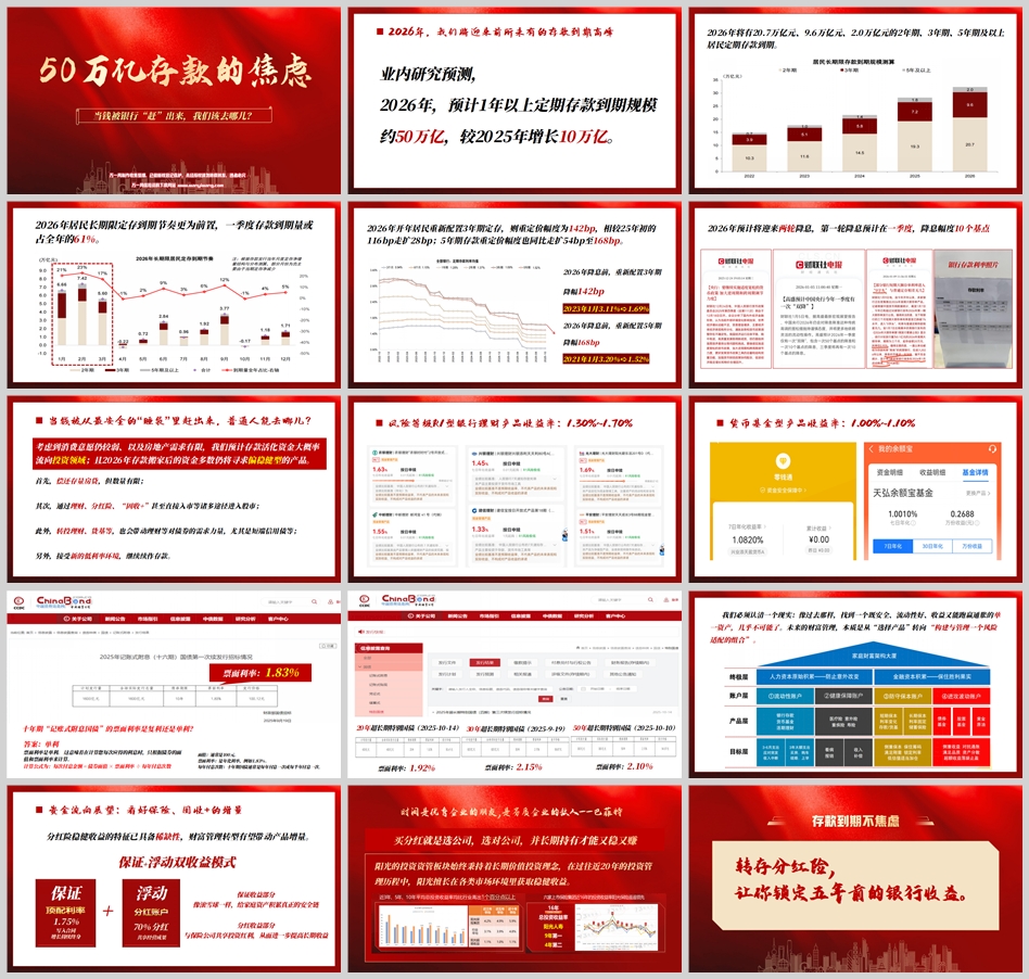 2026年,中国金融系统将迎来一场史无前例的"存款大迁徙"。据业内权威研究预测,当年1年以上定期存款到期规模将飙升至50万亿元,较2025年暴增10万亿。其中,2年期、3年期、5年期及以上居民定期存款到期量分别达20.7万亿、9.6万亿和2.0万亿元。更令人警惕的是,一季度存款到期量可能占据全年总量的61%,形成巨大的流动性冲击。当央行连续降息将3年期定存重定价幅度推高至142个基点(较2025年初扩大28bp),5年期定存降幅更达168个基点时,普通投资者突然发现:那个曾经安稳的"利率睡袋",正在以肉眼可见的速度瘪下去。