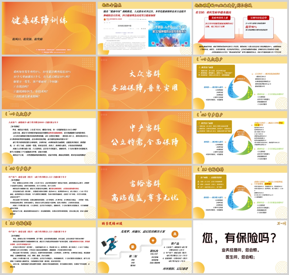国寿版训练材料的精髓,在于其对客群的精准分层和产品组合的“量体裁衣”。不同收入、不同人生阶段的客户,对健康保障的需求维度完全不同。