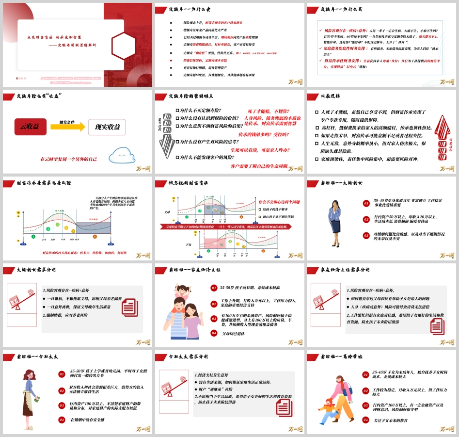 营销切入点:“李太太,您为这个家付出了很多,但您有没有想过,家庭的财产您了解多少?如果先生出了状况,您和孩子的未来靠什么?定额寿是一张属于您和孩子的‘安全网’,无论发生什么,这笔钱是确定的。”