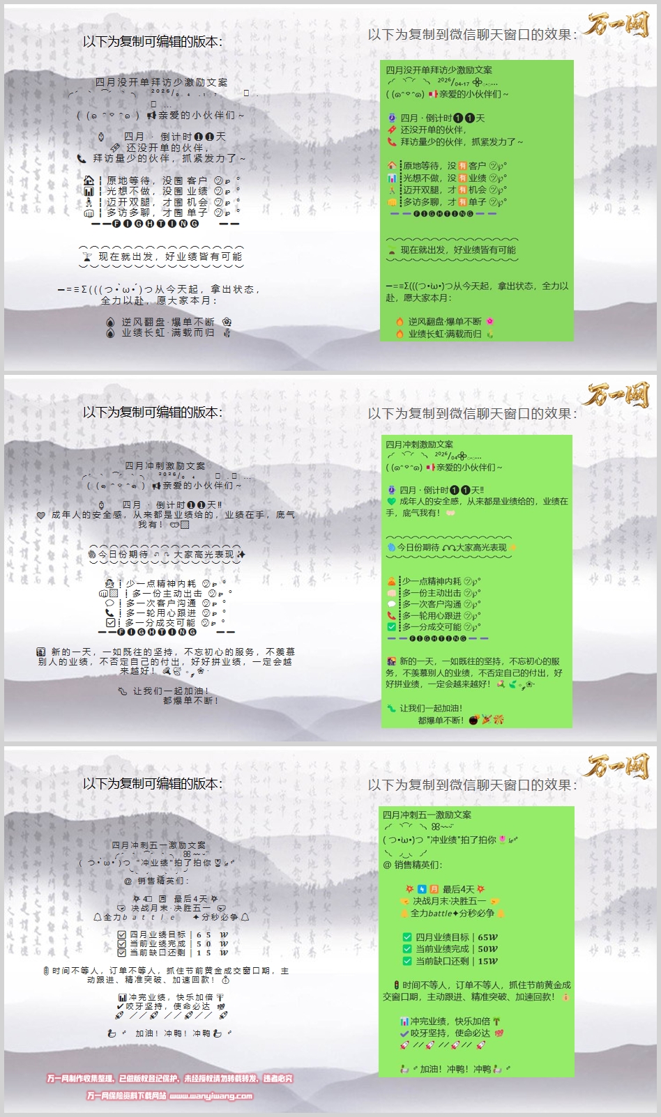四月冲刺激励文案,亲爱的小伙伴们四月 · 倒计时11天!!成年人的安全感,从来都是业绩给的,业绩在手,底气我有!今日份期待,大家高光表现少一点精神内耗,多一份主动出击,多一次客户沟通,多一轮用心跟进,多一分成交可能,新的一天,一如既往的坚持,不忘初心的服务,不羡慕别人的业绩,不否定自己的付出,好好拼业绩,一定会越来越好!。让我们一起加油!都爆单不断!