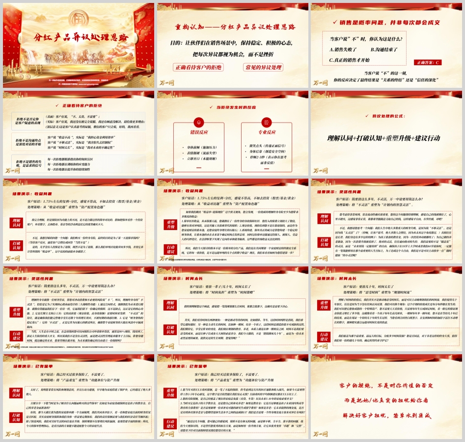 所有分红产品异议处理,均可归纳为以下四步标准化公式: