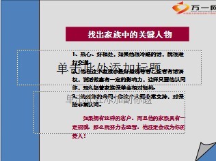 2、他在这个家族中最好是领导者,或者有话语权,说话做事有一定的影响力,这样只要他认同你,那么经营家族保单会相对轻松。