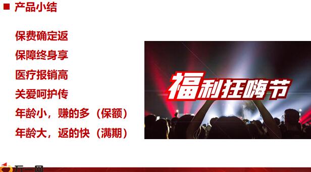 把您之前购买的所有保费***元全部退还给到您,总计**万作为我们的养老金。所以这款保险既拥有了疾病保障,到期保费还全部领回,保障还伴随终身,相当于钱放到保险公司保管着,到期返还您,还让您拥有一辈子的高额保障,病了赔了免了还能养老,领了养老还能保终身,保了终身还有传承金。一金三用,您觉得好不好?五、特定疾病二三次赔付恶性肿瘤-重度、较重急性心肌梗死、严重脑中风后遗症可二三次赔付,每次50万,间隔期5年。六、寿险复原金首次重疾赔付一年后身故,给付50万元。七、身故全残保险金,18周岁前:主险合同实际缴纳的保险费的300%给付身故或全残保险金18周岁后:50万八、豁免保障轻/中/重疾一旦赔付,豁免后期保费。