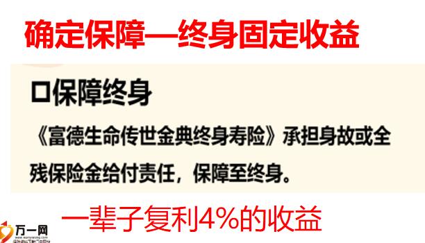终身寿险一款把一切都写进合同的理财传承计划,2021保险产品创新论坛上富德生命传世金典终身寿险荣获“年度严选终身寿险产品”奖确定增值—年年涨,确定保障—终身固定收益一辈子复利4%的收益确定灵活,合同生效2年后可随意支取确定传承钱想给谁自己说了算,交3年权益演示投保人申请灵活支取30岁领取50万作为创业金18-21岁每年领取10万作为教育金,十九载富德感恩回馈又一巨献,额外赠送如意宝万能账户终身保底2.5%写进合同现行年利率4.98%,想存就存,想取就取享受活期便利,定期高收益灵活性,安全性存入的本钱绝对安全,不会不翼而飞,国家法律合同予以保障账户锁定终身保底2.5%,20年期:年收益107.8元,20年总收益2,156元作为国家投资——为什么7年期最多?作为个人——这个收益够看吗?