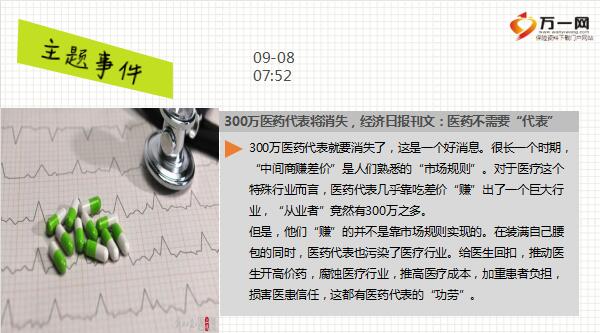 300万医药代表就要消失了,这是一个好消息。很长一个时期,“中间商赚差价”是人们熟悉的“市场规则”。对于医疗这个特殊行业而言,医药代表几乎靠吃差价“赚”出了一个巨大行业,“从业者”竟然有300万之多。