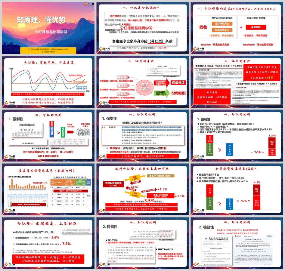分红保险是一种结合了固定收益和浮动收益的人寿保险产品,它允许客户分享保险公司的经营成果,同时提供一定的保障。分红保险的红利来源于公司的经营盈余,并通过强制性的分红机制分配给客户。客户可以通过红利实现率来衡量分红水平的高低,并选择不同的红利领取方式来最大化自己的利益。分红保险是一种适合长期投资的保险产品,它能够在不同的经济周期中为客户提供稳定的回报和潜在的额外收益。