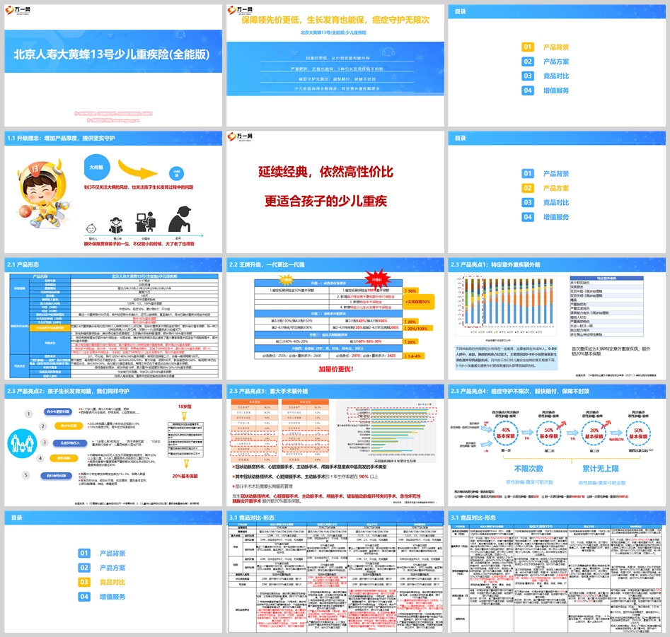 北京人寿大黄蜂13号少儿重疾险(全能版)延续了经典产品的高性价比,同时在保障内容上进行了全面升级。这款产品的设计理念是增加产品厚度,提供坚实的守护,不仅关注大病风险,也关注孩子生长发育过程中的问题。从婴幼儿到青少年,再到成年和老年,大黄蜂13号为孩子的一生提供全面保障。