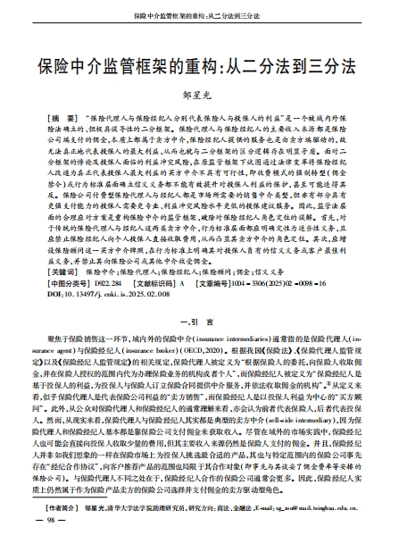 传统的二分框架未能充分认识到保险中介的经济激励机制,导致投保人可能低估保险经纪人因保险公司支付佣金所带来的利益冲突风险。因此,有必要在监管框架中明确保险人支付佣金所带来的高度利益冲突风险。