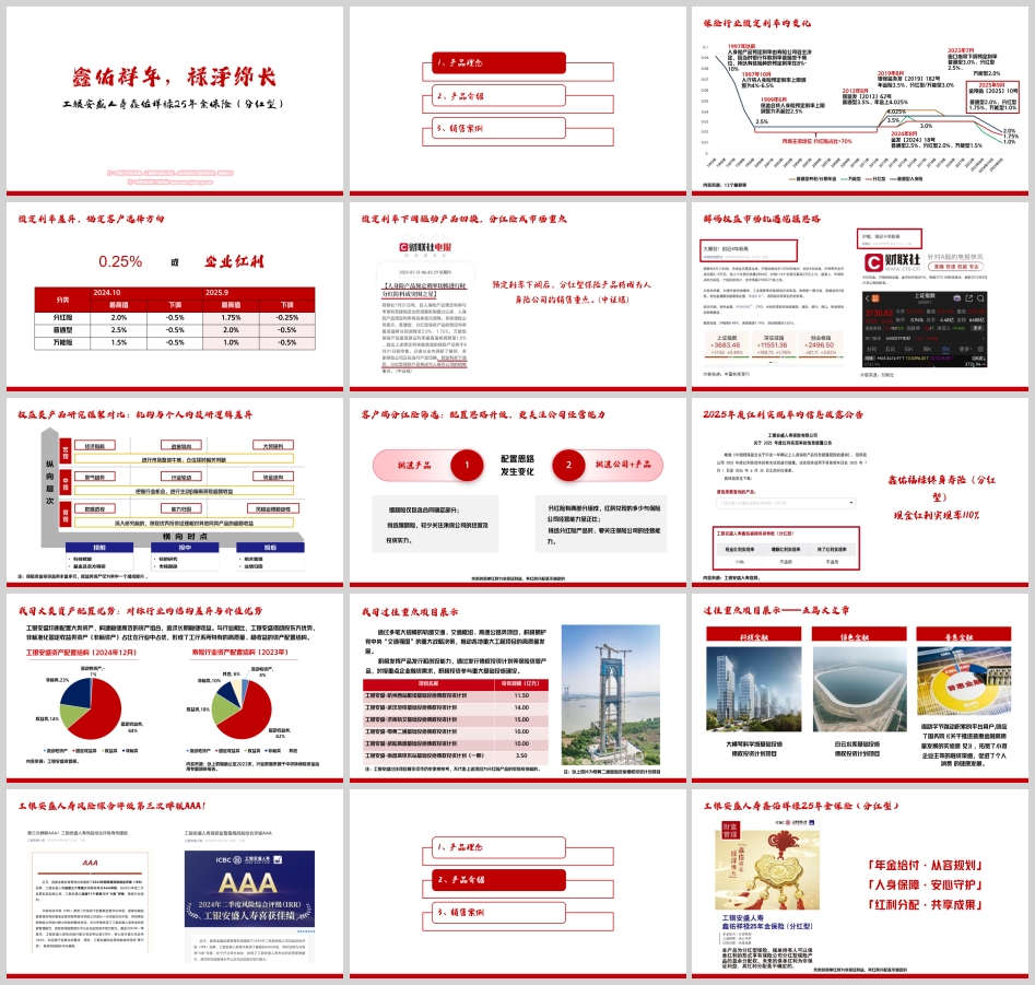 客户端分红险筛选时配置思路发生变化。增额险仅包含合同确定部分,挑选增额险时较少关注承保公司的经营及投资实力。而分红险有两部分组成,红利兑现的多少与保险公司经营能力呈正比。因此,挑选分红险产品时,要关注保险公司的经营能力。工银安盛人寿在这方面具有一定的优势,其均衡配置大类资产,构建稳健高效的资产组合,追求长期稳健收益。与行业相比,借助股东方优势,非标准化固定收益类资产(非标资产)占比在行业中占优,形成了工行系所特有的高质量、稳收益的资产配置结构。例如,工银安盛通过多笔大规模的轨道交通、交通枢纽、高速公路类项目,积极拥护党中央“交通强国”的重大战略决策,推动各地重大工程项目的高质量发展,同时积极发挥产品发行和创设能力,通过发行债权投资计划等保险资管产品,对接重点企业融资需求,积极投资参与重大基础设施建设。这些投资举措为分红险的红利分配提供了坚实的基础,使得客户在选择工银安盛的分红险产品时,能够更有信心地期待红利收益。