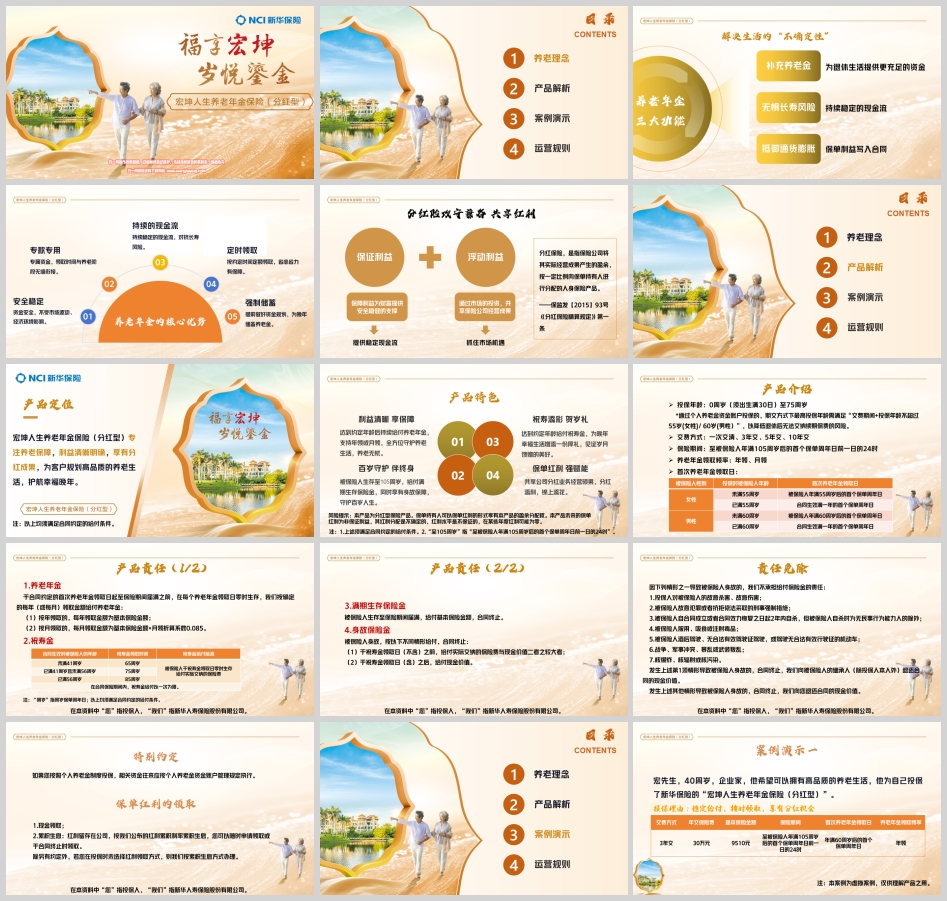 新华宏坤人生养老年金保险(分红型)专注于养老保障,旨在为客户规划高品质的养老生活,护航幸福晚年。它不仅提供了稳定的养老金,还通过分红机制为客户带来了额外的潜在收益,实现了安全性与收益性的完美结合。