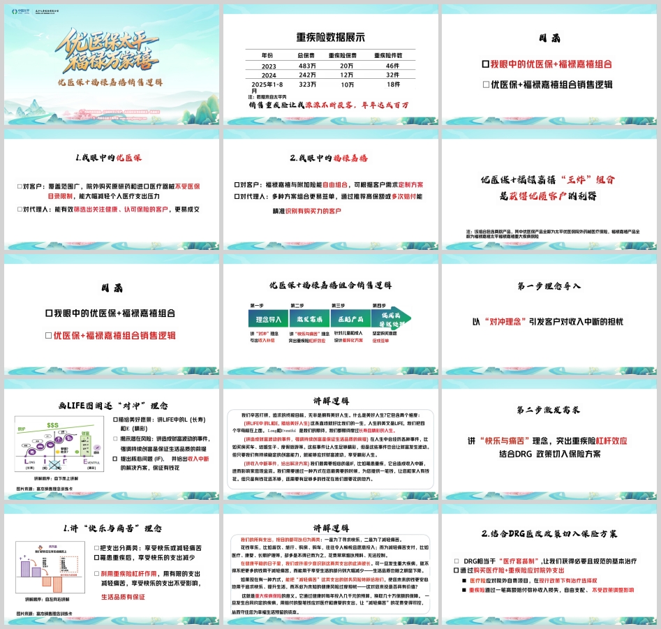 太平人寿在重疾险销售方面成绩斐然,2023 年总保费达 483 万,重疾险保费 20 万,重疾险件数 46 件;2024 年总保费 242 万,重疾险保费 12 万,重疾险件数 32 件;2025 年 1 - 8 月也有可观的数据。重疾险销售不仅为保险公司带来了可观的收入,更为代理人带来了源源不断的客源,助力代理人年年达成百万业绩。而“优医保 + 福禄嘉禧”组合,即太平优医保院外药械医疗保险和福禄嘉禧太平福禄嘉禧重大疾病保险,是太平人寿针对市场需求推出的又一有力武器,旨在为客户提供更全面、更个性化的保障。