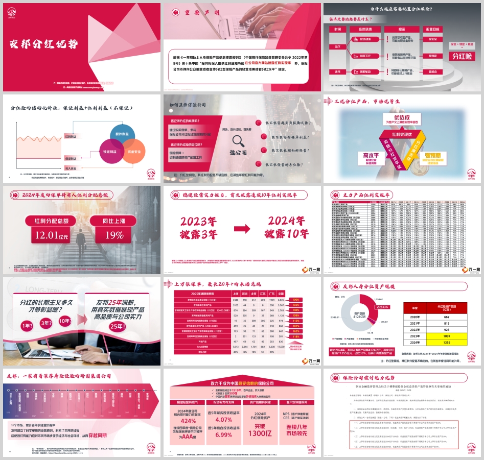 友邦分红险在市场上表现出色,具有红利实现优、实际分红水平优、分红演示优的特点。公司遵循国家法律、法规和监管部门相关规定,秉承财务稳健的宗旨,公平合理地分配红利,为客户提供长期稳定的保险利益。每年向保单持有人分配的红利额度不低于当年实际分配总额的70%,确保了投保人能够充分享受保险公司的经营成果。2024年,友邦分红险实现了19%的同比上涨,向保单持有人红利分配总额达到12.01亿元,展现了公司强大的盈利能力和分红实力。