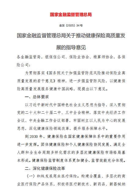 健康保险作为国家多层次医疗保障体系的重要组成部分,正迎来前所未有的发展机遇。近日,金融监管机构发布《关于推动健康保险高质量发展的指导意见》,为健康保险的未来发展指明了方向。这份重要文件不仅回应了人民群众对健康保障的迫切需求,更为保险行业转型升级提供了行动指南。