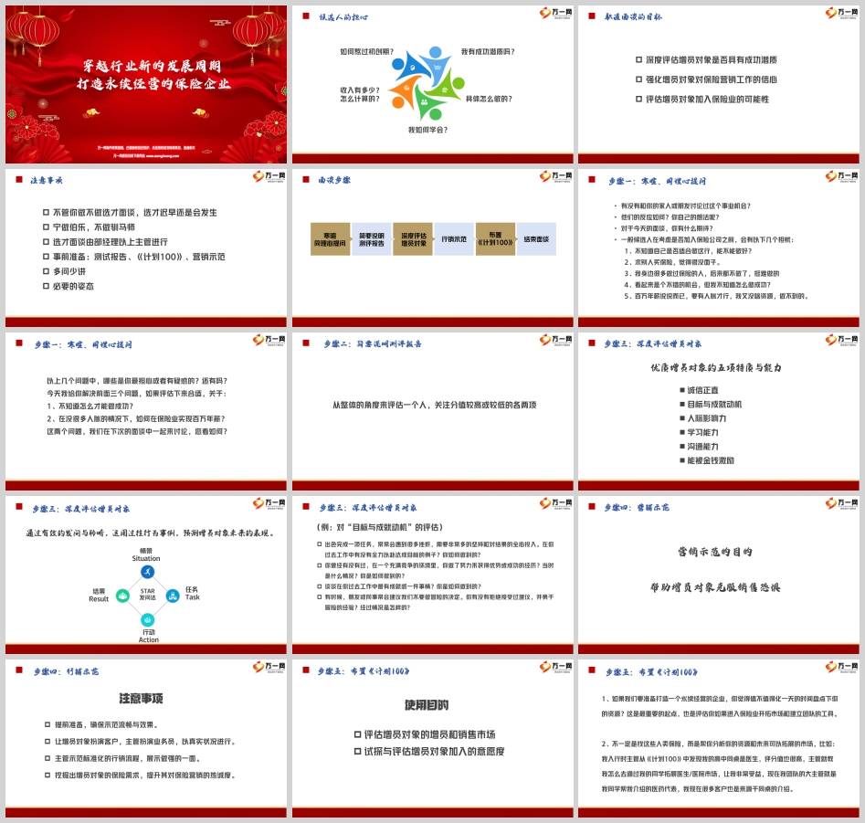 这是选材面谈的核心环节,旨在通过过去的行为来预测其未来的表现。我们重点考察优质增员对象的五项特质与能力:诚信正直、目标与成就动机、人际影响力、学习能力、沟通能力,以及一项基础动力——能被金钱激励。