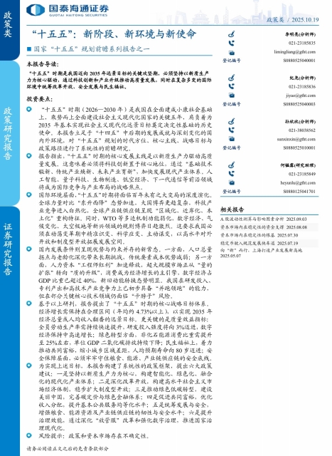 “十五五”时期是我国迈向2035年远景目标的关键攻坚期,也是我国在新的历史阶段面临新环境、肩负新使命的重要时期。在这一时期,我们需要坚持以新质生产力为核心驱动,通过科技创新和产业升级推动高质量发展。同时,我们需要在复杂多变的国际环境中统筹改革开放、安全发展与民生福祉,为实现2035年基本实现社会主义现代化远景目标奠定决定性基础。