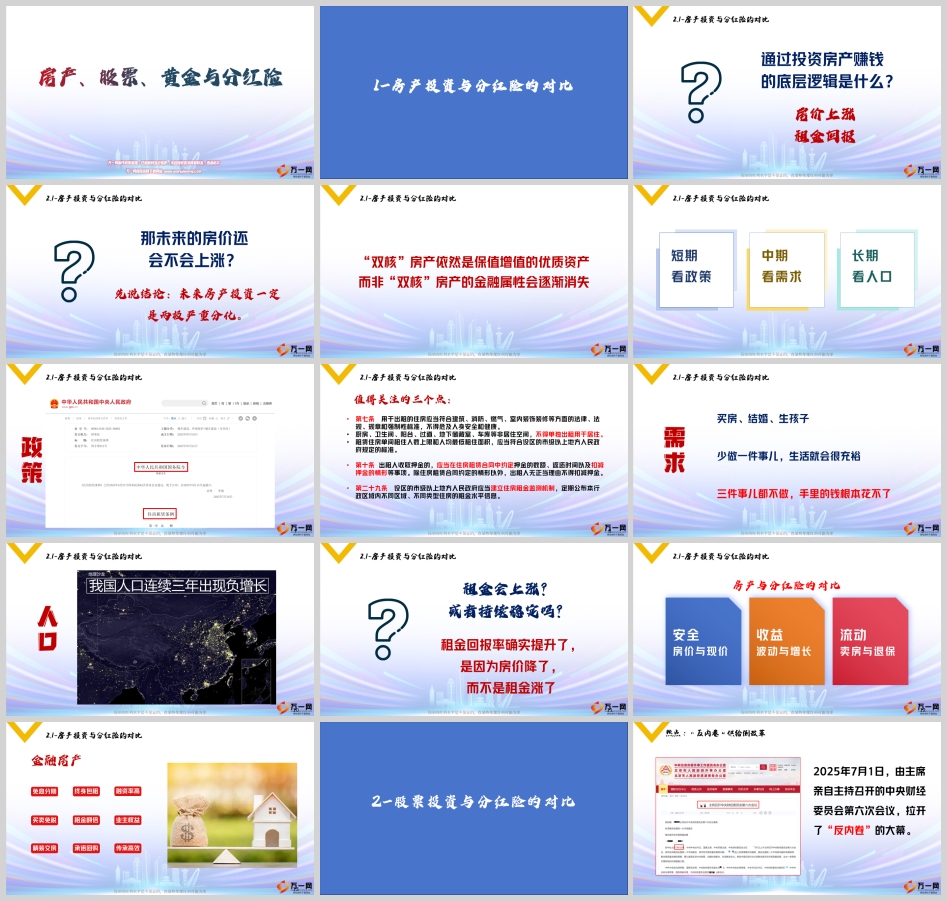 未来,随着经济环境的变化和政策的调整,投资者需要根据自身的财务状况、风险偏好和投资目标,合理配置资产,实现财富的稳健增长和传承。无论是房产、股票、黄金还是分红险,都只是实现财务目标的工具,投资者需要根据市场变化灵活调整投资策略,确保资产的安全与增值。