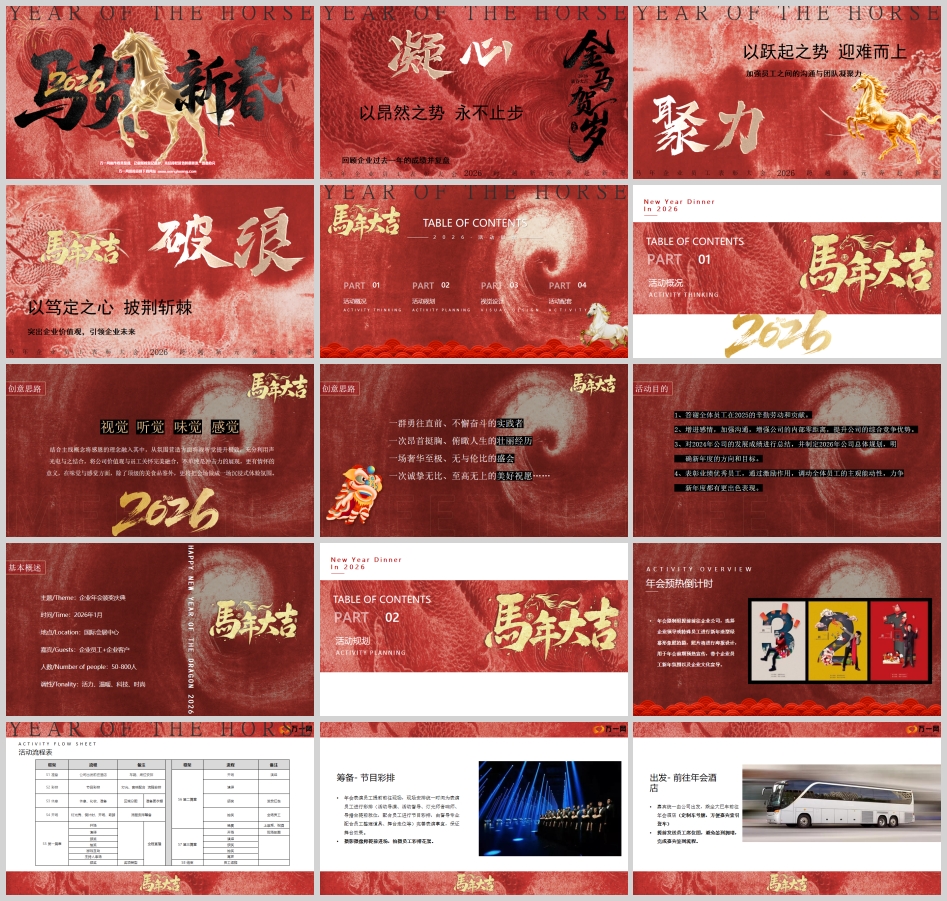 2026马年企业员工表彰大会是一次集回顾、表彰、激励、展望于一体的综合性盛会。通过精心的活动规划、独特的视觉设计、全方位的活动配套以及深入贯彻企业价值观,这个年会将成为企业发展历程中的一个重要里程碑。它不仅让员工在欢乐和荣耀中感受到企业的关怀和认可,更让全体员工明确了未来的发展方向,激发了员工的斗志和创造力。在马年,企业将以此次年会为新的起点,以昂然之势永不止步,以跃起之势迎难而上,以笃定之心披荆斩棘,带领全体员工向着更加美好的未来奋勇前行,实现企业的可持续发展,创造更加辉煌的业绩。