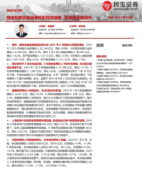 保险行业深度观察:预定利率切换后寿险阶段性放缓,非车险企稳回升