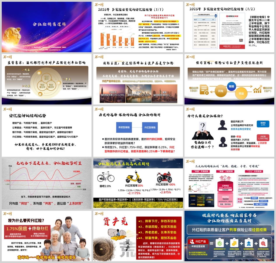 在销售过程中,销售人员要从“谈理想”打开话题,引发客户对未来生活的思考;到“讲现状”让客户了解当前经济环境和投资市场的形势;再到“聊规划”启发客户对家庭财富规划和风险保障的责任意识;然后导向“高固收”强化客户对分红险固定收益部分的信任;最终通过“稳分红”传递分红险的价值。通过这样一套完整的销售逻辑,分红险将不再是“销售的难题”,而是“财富的答案”。