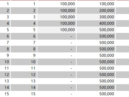 这是家庭的资本投入阶段。5年期间,累计总保费50万元。值得注意的是,在第5个保单年度末,保单的现金价值已达到512,617元,不仅追平了累计总保费,并已实现小幅增值。这意味着,在缴费期刚结束的那一刻,资金就已突破了“回本”关口,具备了充分的流动性和安全性。