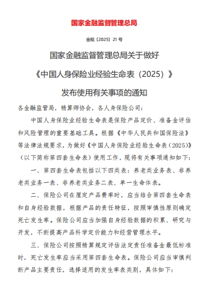 关于《中国人身保险业经验生命表(2025)》实施的通知解读与行业影响分析
