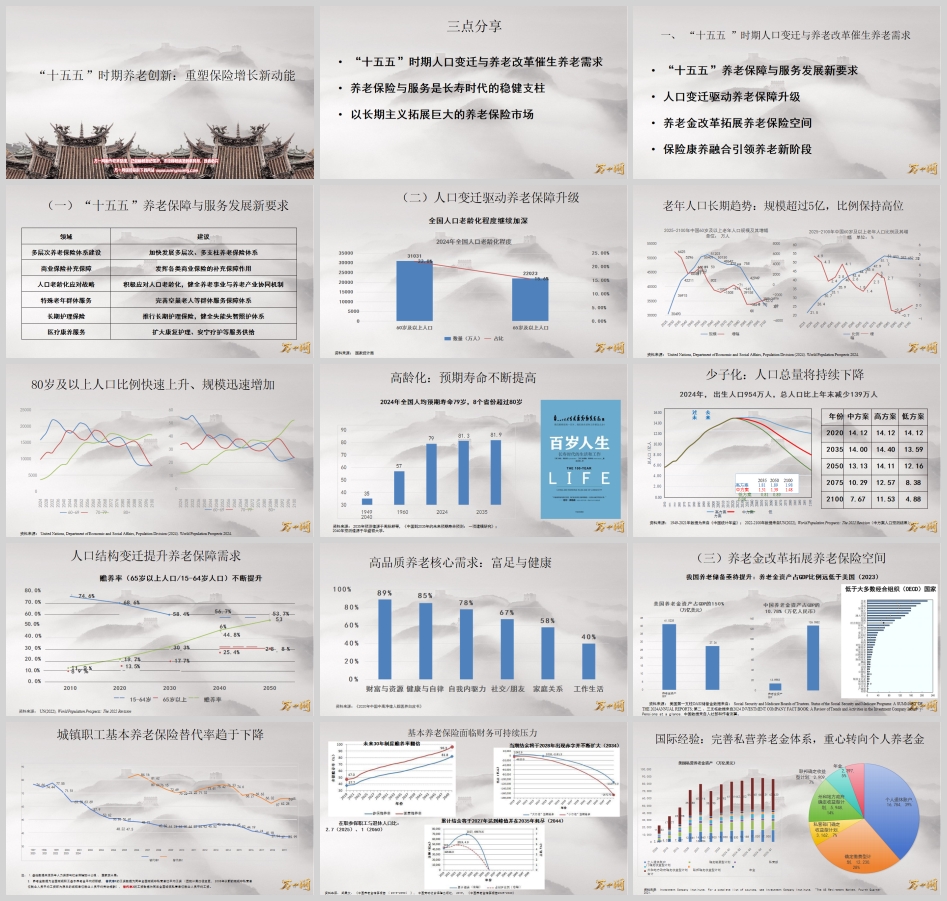 行业能力建设与挑战:要真正发挥好财富积累功能,保险业需攻克几大课题:一是提升长期资金投资收益率,在安全稳健的前提下,通过优化资产配置(包括在监管框架内稳慎探索全球资产配置)和能力建设,为保单持有人创造更具吸引力的长期回报。二是加强长寿风险管理的基础设施建设,如参与构建更精准的生命表、探索长寿风险证券化等对冲工具。三是培养专业养老财务规划人才,改变目前销售导向的现状,建立一支能为客户提供全生命周期养老财务规划咨询的专业队伍。