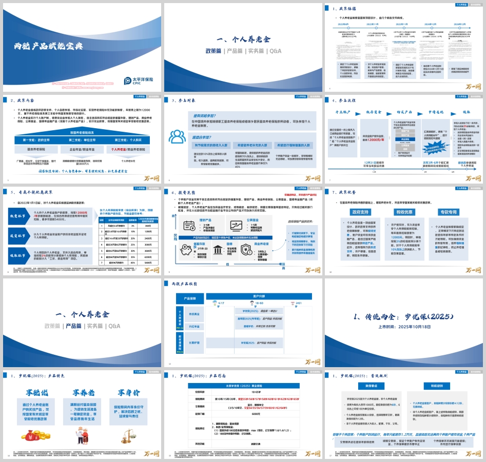 结语:个人养老金制度叠加税优健康险,构成了“两税”产品的黄金组合。太保2025三款个养新品在佣金、利益、弹性上各有侧重,配合完善的银行对接与实务流程,可帮助业务员在高收入客群与养老规划场景中实现高效转化。