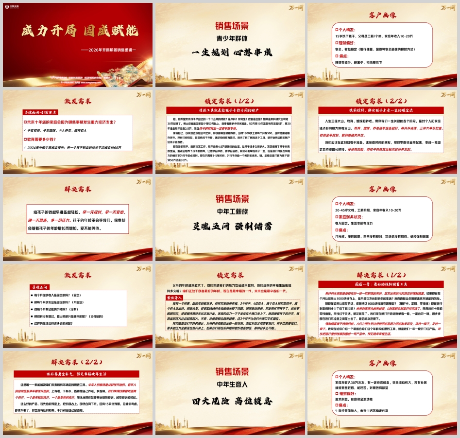 销售的本质,是成为客户家庭的 “财务医生”和“风险顾问” 。我们提供的不仅是一份保单,更是一份穿越经济周期的确定性,一份对抗人性弱点的纪律性,一份守护家庭幸福的安全性。在2026年的开局之际,唯有深刻理解不同客群的生存状态与情感诉求,运用场景化的专业逻辑,才能实现真正意义上的“威力开局”,以专业之“威”,赋能客户家业长青之“国威”。