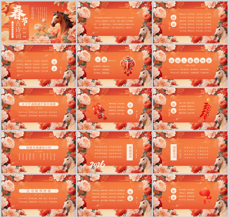 在中国广袤的土地上,每当岁末年初,一场全民参与的盛大仪式便会如期而至。这便是春节,中华民族最隆重、最富有生命力的传统节日。它不仅仅是夏历正月初一这一天,而是一个从腊月小年延续至正月十五元宵节的完整文化周期,承载着祭祖敬老、感恩祈福、阖家团聚、除旧布新、迎禧接福、祈求丰年等丰富的文化内涵。千年来,无数文人墨客用诗词记录下这个节日的点滴瞬间,为我们勾勒出一幅幅生动鲜活的春节历史画卷。这些诗词,既是个人情感的抒发,也是时代风貌的缩影,更是民族精神的集体咏叹。