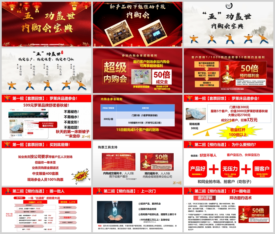 购票工具:每人配2张内购成交福利卡(现场签单交公司,不给客户),5张预约福利卡(用于展示)。