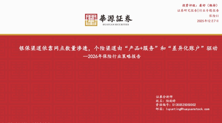 中国寿险行业在经历了“以量取胜”的粗放扩张期和“回归保障”的深度转型期后,正步入一个以 “高质量发展”和“价值增长” 为核心的新阶段。代理人队伍的缩量提质、产品预定利率的连续下调、资本市场波动带来的利差压力,共同构成了行业转型的复杂背景。然而,危机之中孕育新机。展望2026年,行业增长动能正发生深刻的结构性转变:银保渠道依靠其独特的资源禀赋和战略升级,有望成为新业务价值的强劲引擎;个险渠道则在历经阵痛后,通过“产品+服务”和“账户差异化”深挖存量价值,走向高质量发展。与此同时,行业负债成本的优化、投资结构的调整以及长期投资试点的推进,正为行业筑起更稳健的财务基石,并释放利润弹性。