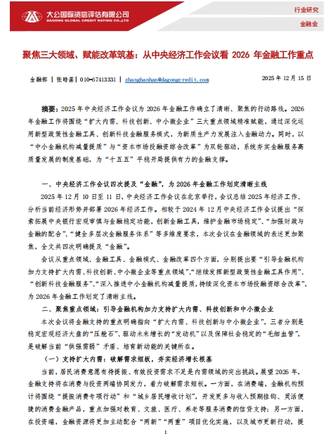2025年中央经济工作会议为2026年金融工作绘制的蓝图,体现了以金融高质量发展支撑经济高质量发展的战略思路。在这一思路指导下,2026年的中国金融体系将不仅仅是资金的“搬运工”,更是资源的“配置器”、创新的“催化剂”、风险的“稳定器”。