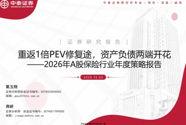 2026年A股保险行业年度策略报告:重返1倍PEV修复途,资产负债两端开花