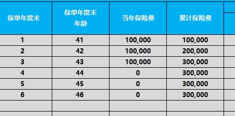 交费方式:3年交,年交保费10万元,累计保费30万元;