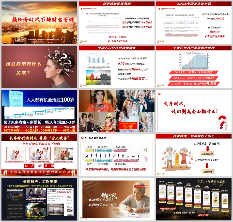 延迟退休政策逐步落地,“多交5年,少拿5年”的现实引发广泛关注。而存款利率从2020年的4.18%断崖式下降至如今的1.25%,更是宣告了“存款2.0时代”的远去。生育率位居全球倒数第二,2049年老龄人口将达4亿,2055年达峰值4.5亿...这一系列数据描绘了一个不容乐观的未来图景。然而,危机往往与机遇并存。新经济时代下,财富管理的内涵正在发生深刻变化。