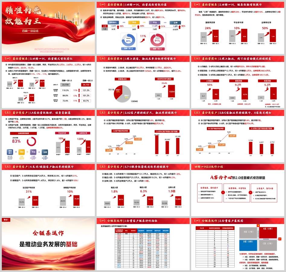 小结:四精一训2.0实现了全链条效能提升、经营模式固化、线上线下融合、A客引领结构优化,为3.0阶段的精准化运作奠定了坚实基础。