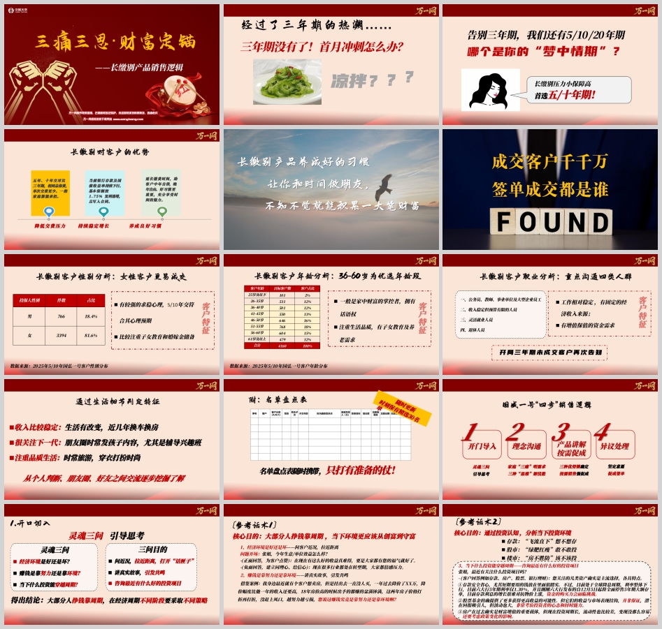 中老年客户:需求聚焦长寿现金流、减轻子女负担,强调“长寿思维+资产思维”,用“百岁人生需终身现金流,提前规划不拖累孩子”促成。