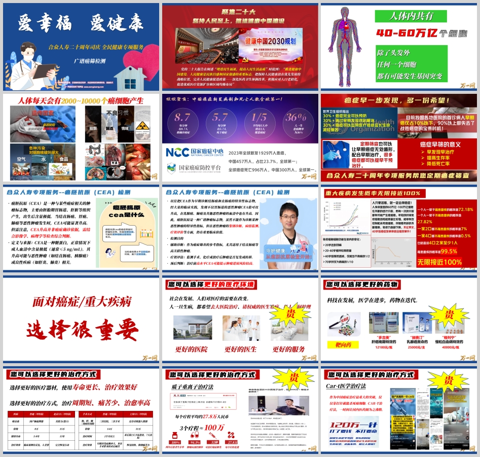 值此合众人寿保险股份有限公司成立二十周年之际,公司秉承“源于爱 传递爱”的核心理念,积极响应国家号召,隆重推出“全民健康专项服务”及“爱幸福”重大疾病保险产品。我们不仅仅是在销售一份保单,更是在推广一种“前置风险规划、主动健康管理”的生活方式,旨在为广大客户朋友构筑一道从“早筛预防”到“资金保障”,再到“优质医疗资源获取”的全面健康防线。