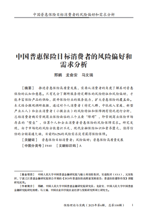 中国作为全球最大的发展中国家,拥有庞大的中低收入人口和数量众多的中小微企业。根据国家统计局数据,2024年中国中等收入群体约4亿人,低收入群体约6亿人,中小微企业数量超过5200万户。这一庞大群体在面对疾病、意外、自然灾害、经营风险等冲击时,往往缺乏足够的风险抵御能力,一次重大风险事件就可能导致其陷入或重返贫困。因此,深入分析普惠保险目标消费者的风险特征、偏好和需求,对于构建多层次、广覆盖的社会保障体系具有重要的理论和实践意义。