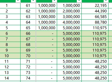前5年(61-65岁):每年领取22,195元,5年累计110,975元(约为累计保费的2.2%)。这一阶段年金金额较高,适合补充退休初期的旅游、医疗等弹性支出;