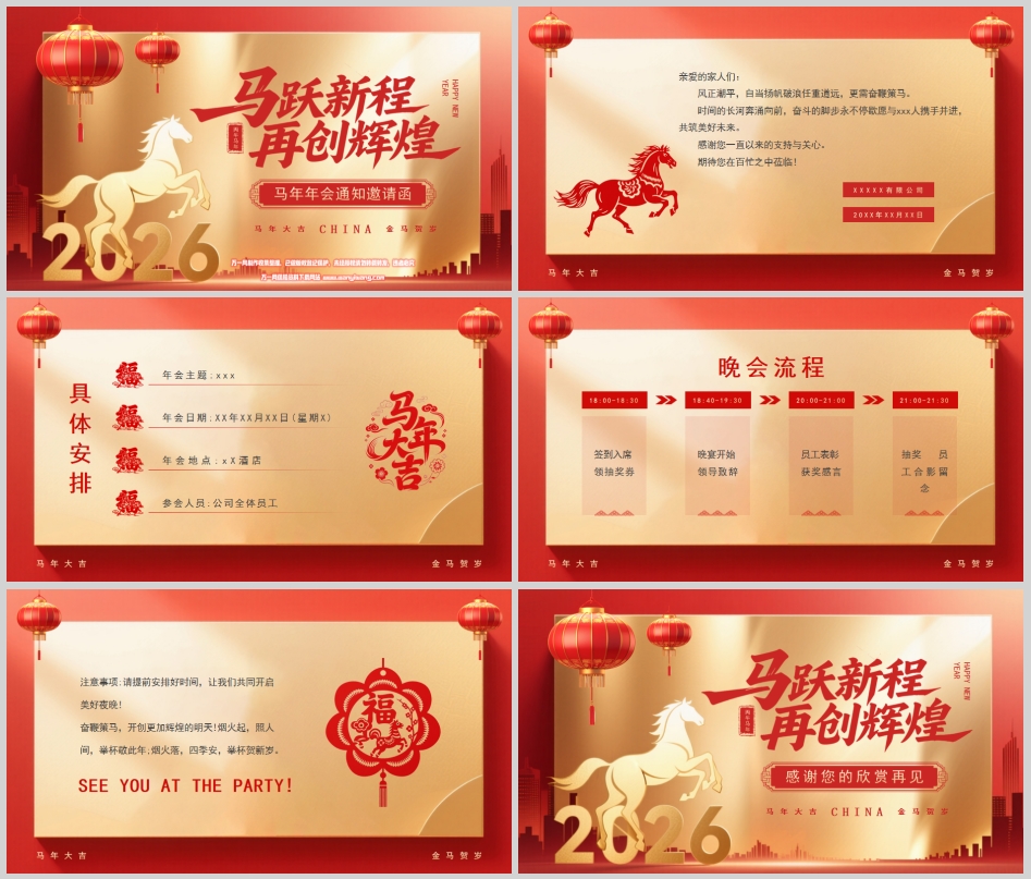 让我们共同期待,在那个华灯初上、红笼高挂的夜晚,全体“XXX人”济济一堂,让欢笑与感动交织,让荣耀与梦想齐飞。让我们以实际行动,回应那一声“奋鞭策马”的号召,将年会凝聚起的磅礴力量,转化为新一年开拓进取的蹄疾步稳。